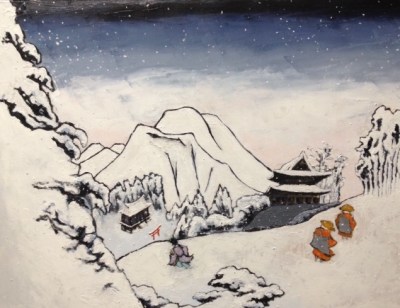 Japan art and the paths of Shintoism and Buddhism: Holy men in the snow without Abraham