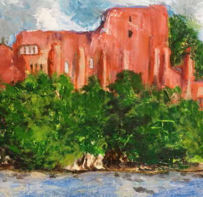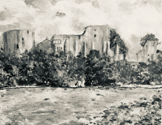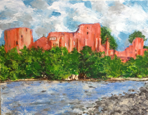 The ruins of Barnard Castle comes alive because the amazing landscape is embedded through the prism of her art. Hence, the River Tees and the strong color scheme of the clouds illuminate the ruins of Barnard Castle.