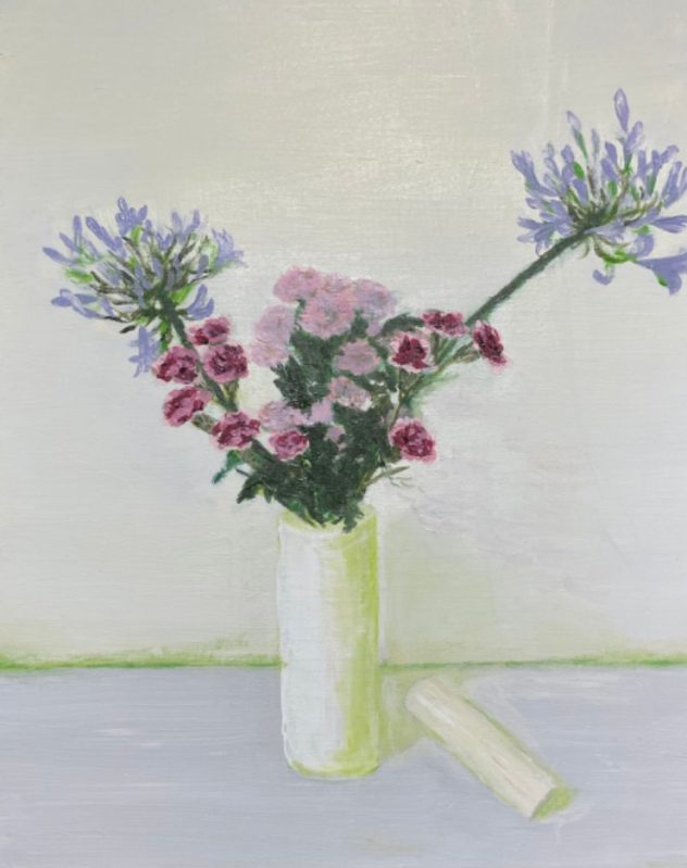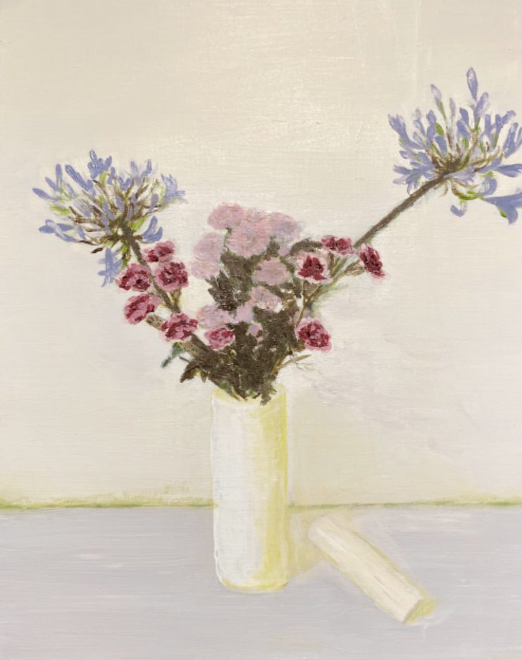 Immediately when viewing “Still Life Art and the Scroll of Time” the flowers dominate this lovely art piece. However, the hidden meaning concerns the scroll – with Utsumi equating this to the scroll of time from a philosophical and religious angle.