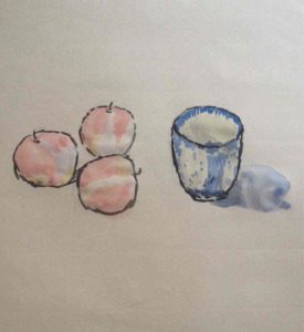 However, in the art piece “Simplicity of Beauty” the number three represented by fruit and the number one represented by the cup have higher meanings. This concerns the significance of the numbers three and one within the philosophy of Pythagoras and Plotinus – and then extended to the Abrahamic world. Henceforth, Utsumi is similarly pushing the same boundary with “Still Life Art and the Scroll of Time.”