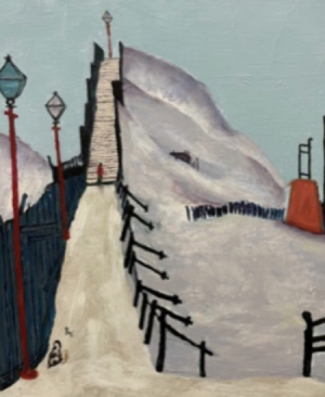 In the other art piece highlighted in this article by Utsumi – titled the delightful “Lowry in Japanese color, space, and time ” – you equally feel her artistic passion for Lowry. These striking art pieces are paying homage to Lowry – while Utsumi also expresses her own individual traits and perspectives – work a treat.
