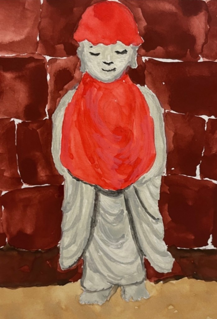 The MET Museum says, “Jizō’s compassionate presence illuminates the righteous way from hell to paradise, and he saves from harm those who call out to him.”