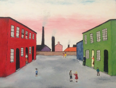 Sawako Utsumi is a contemporary artist from northern Japan. One of her favorite European artists, L.S. Lowry, serves as a key inspiration for several of her works.