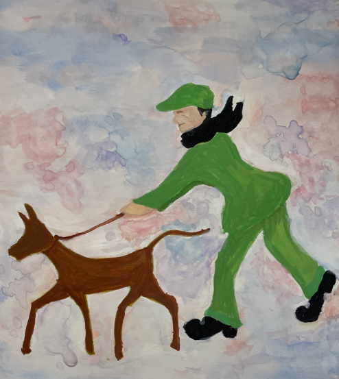Her latest piece is titled “Lowry and Illuminated Man Walking His Dog.”