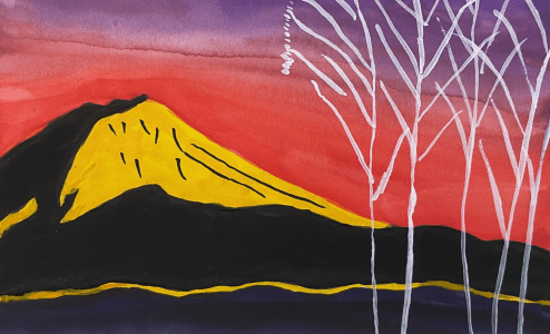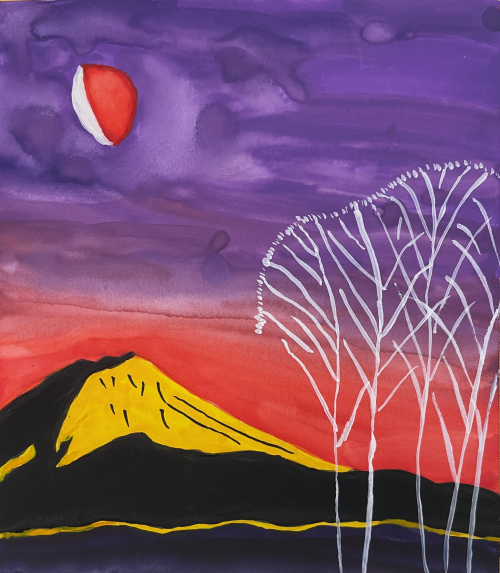 Contemporary artist Sawako Utsumi pays homage to Hagiwara Hideo (1913–2007) in her latest work. Staying true to her distinctive style, she introduces bold new elements—a stark white tree set against a radiant yellow mountain and a vivid low red skyline. These additions, symbolizing energy, renewal, and vitality, offer a layered reinterpretation that both honors and reimagines the essence of Hagiwara’s original vision.