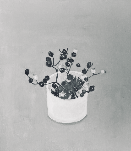 Hence, Utsumi selected a variety of berries to complete her latest artwork. While birds remain unseen, the presence of the berries evokes the warmth of summer into early autumn — and the quiet memory of watching birds feast on nature’s offerings during those long, sunlit days. In this way, her piece resonates with personal recollections and serves as a gentle meditation on the passage of time and the ever-flowing rhythm of the seasons.