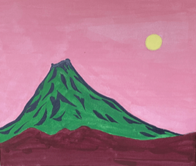 Sawako Utsumi is a contemporary artist from northern Japan. In her works, she vividly reimagines the colors of mountains and skylines, offering a bold reinterpretation of natural landscapes. While the spiritual aspects are not overt, the influence of Buddhism and Shintoism subtly permeates her art through themes of continuity, space, and time.